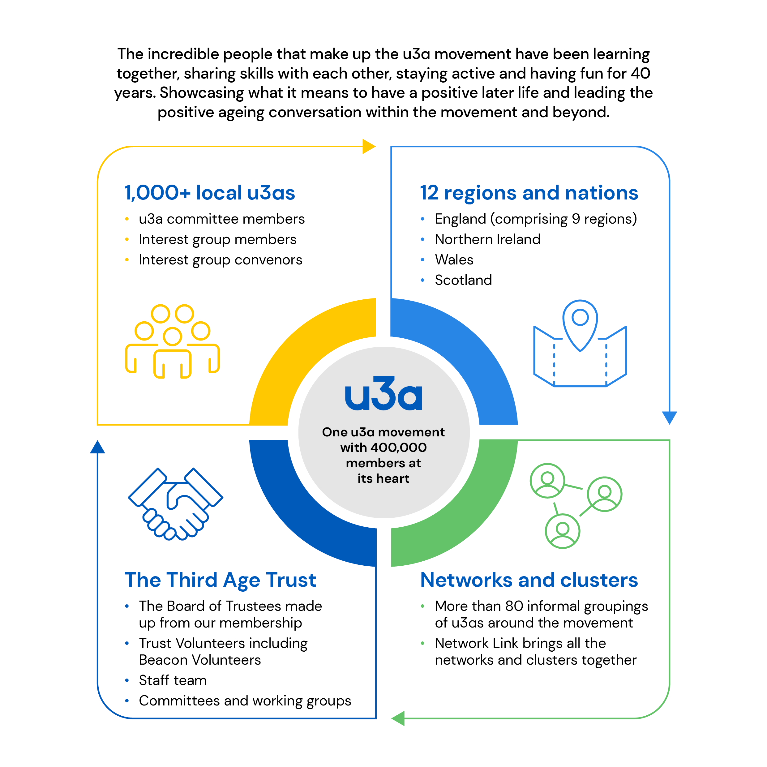 The Trust is supporting u3as and members every day on a wide range of matters, whether that’s through advice and information, insurance, IT, governance, finance, special projects or through communications and publicity.    From the many conversations we are having with members across the movement – we are hearing that u3as want to know how their money is being spent.   We have created an infographic to show exactly to the penny how your £4 is helping us deliver services and support to the u3a movement.