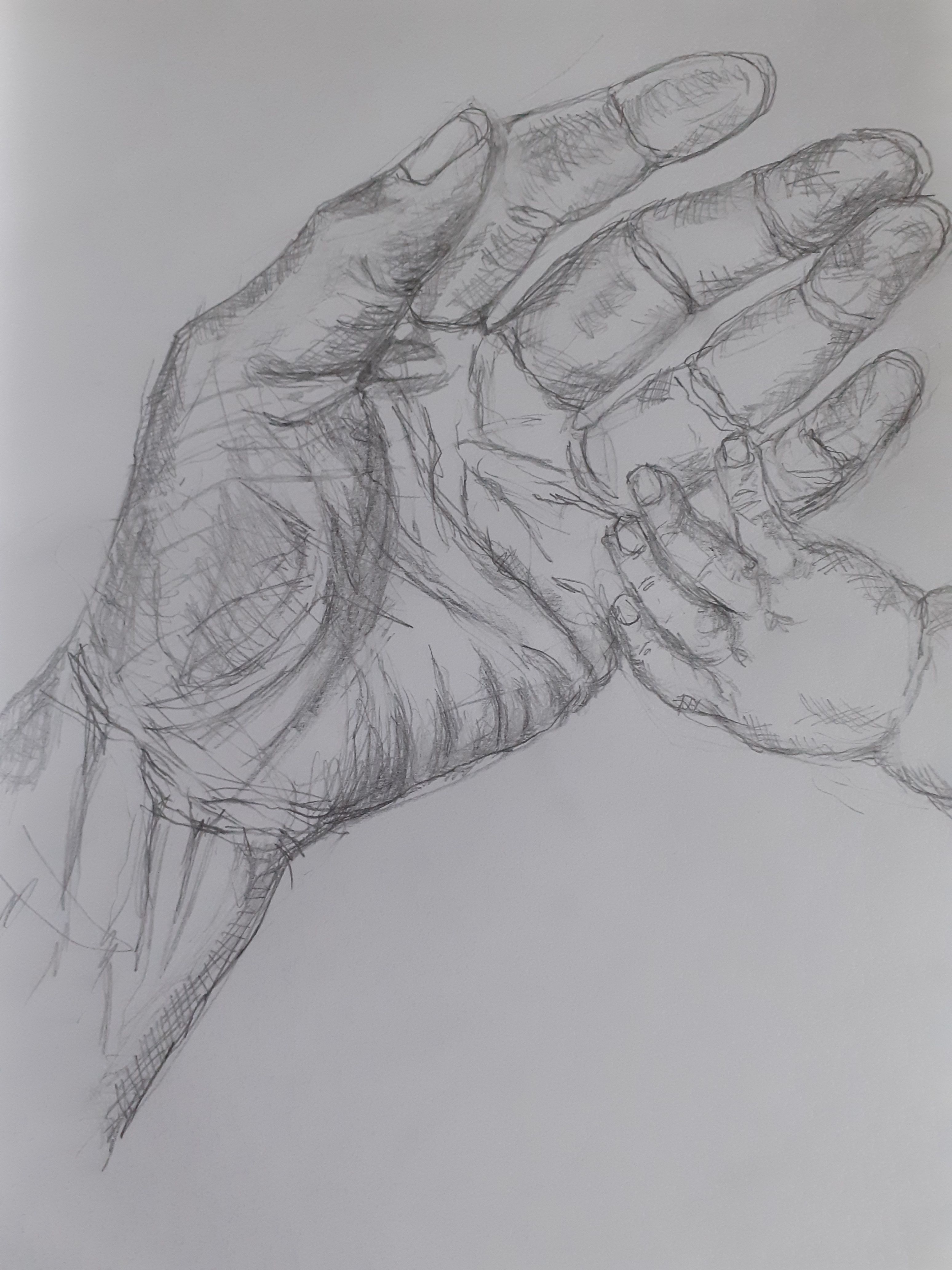 This rough sketch of two very different hands proved to be a difficult subject.