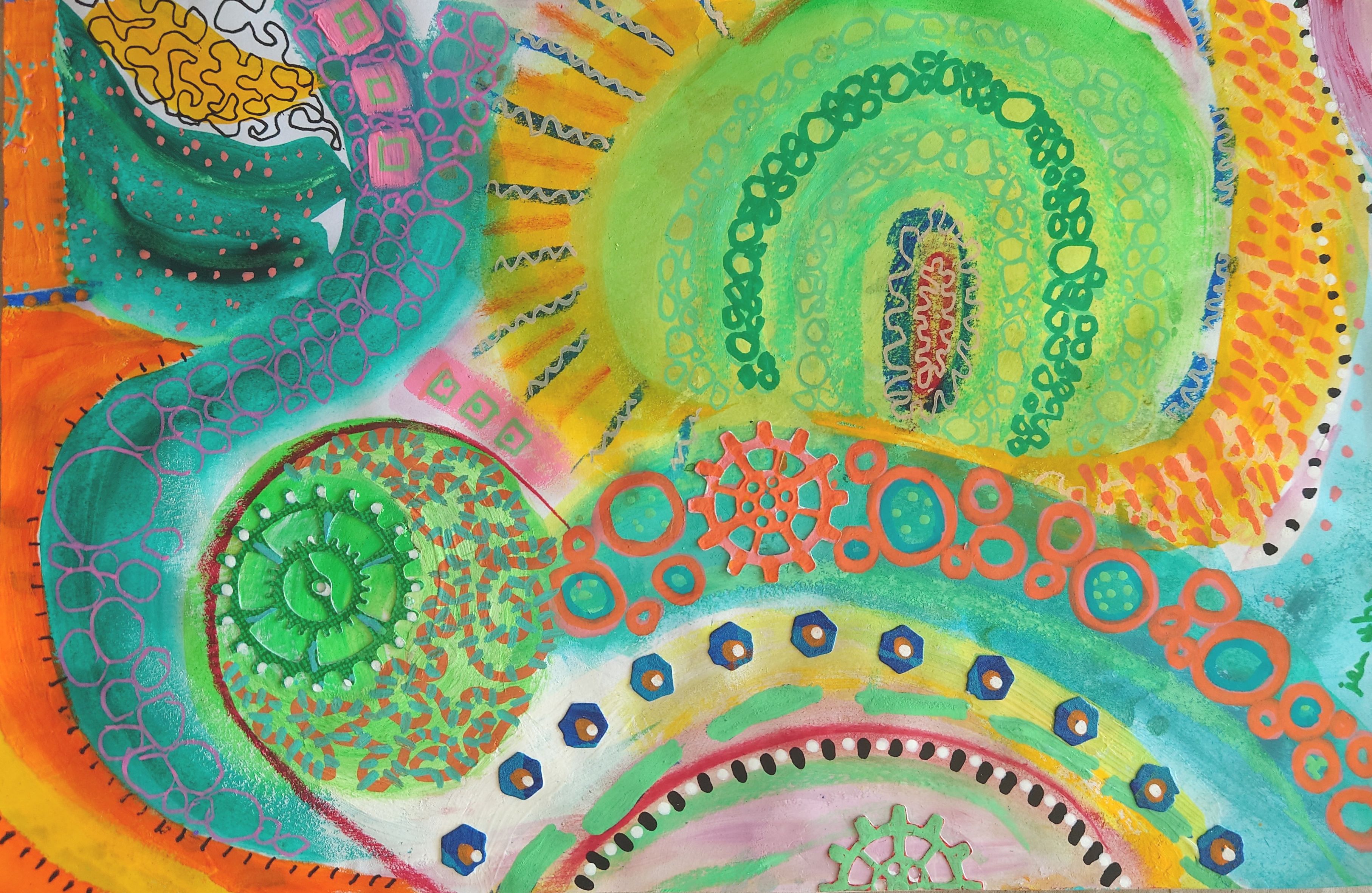 I was inspired to paint these balloons when I saw them drifting quietly by my garden as they were all of different colours and sizes.