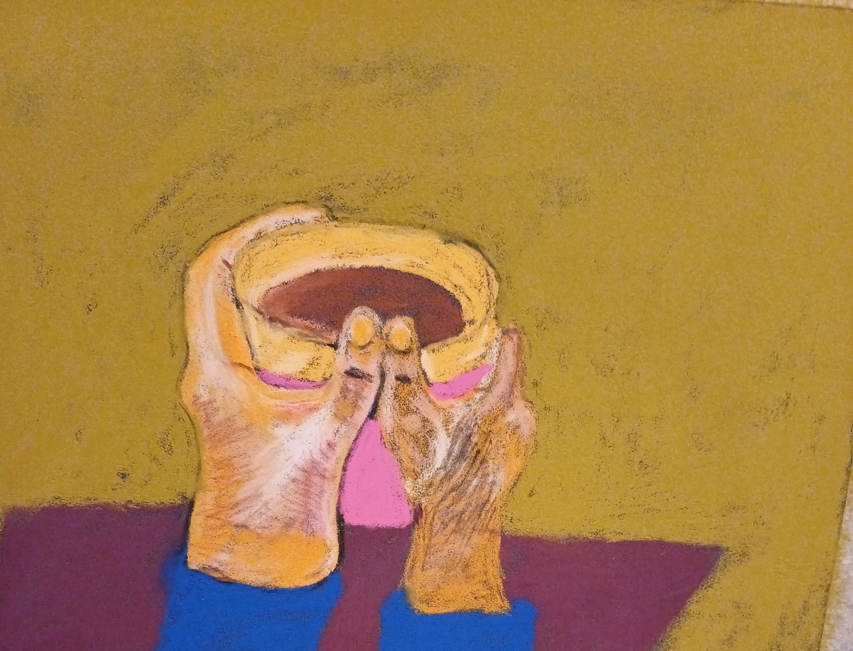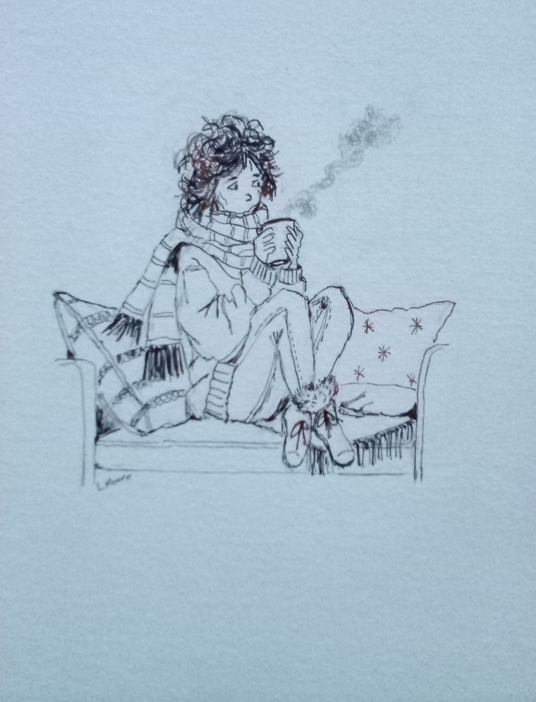 I remembered that wonderful feeling of warmth you get on a cold day when you hold a mug full of a hot drink in both hands. This is what I have tried to show in my picture.