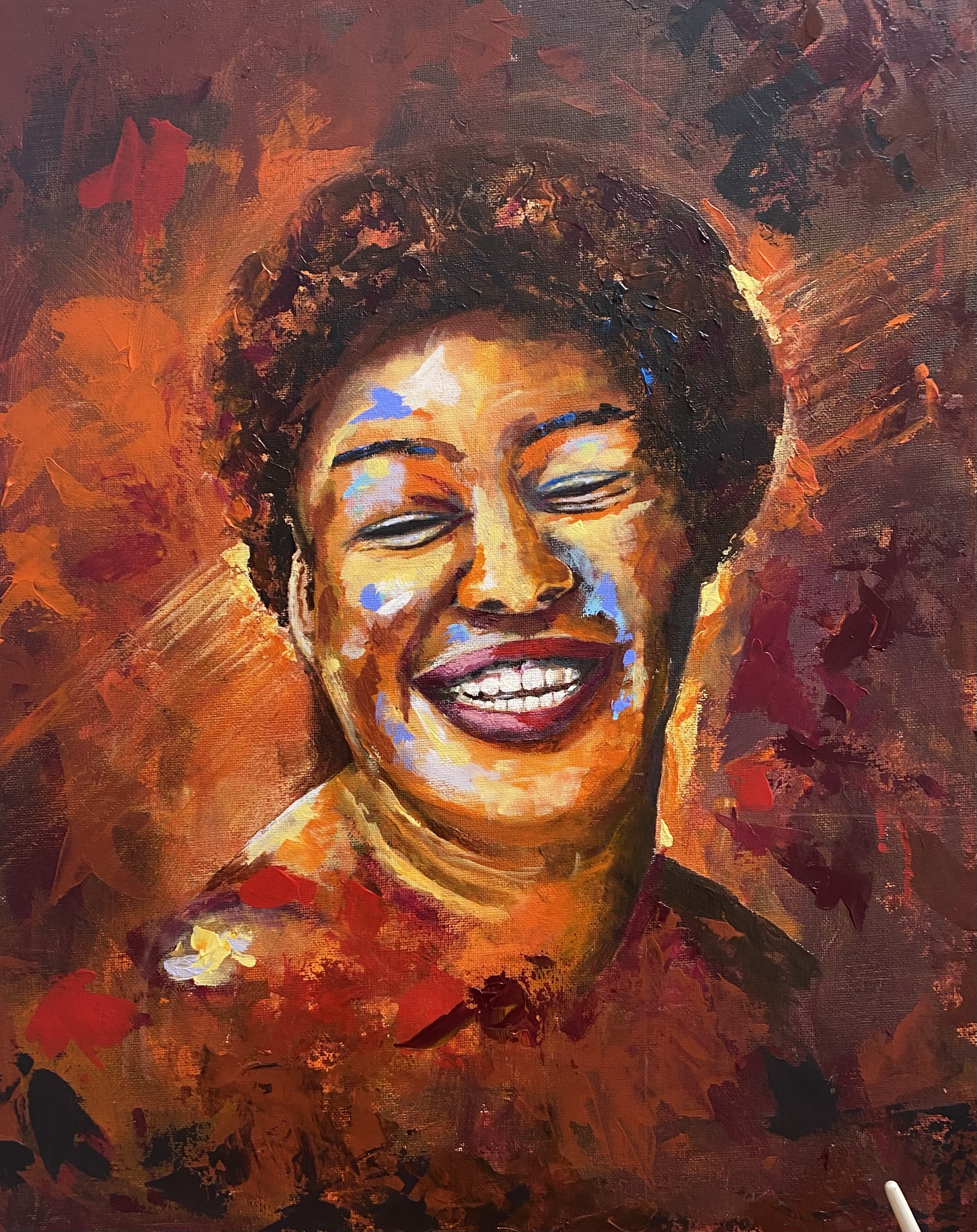 This portrait exudes warmth, the colours, the smile, the crinkle eyes. I think she would embrace you with her big heart.