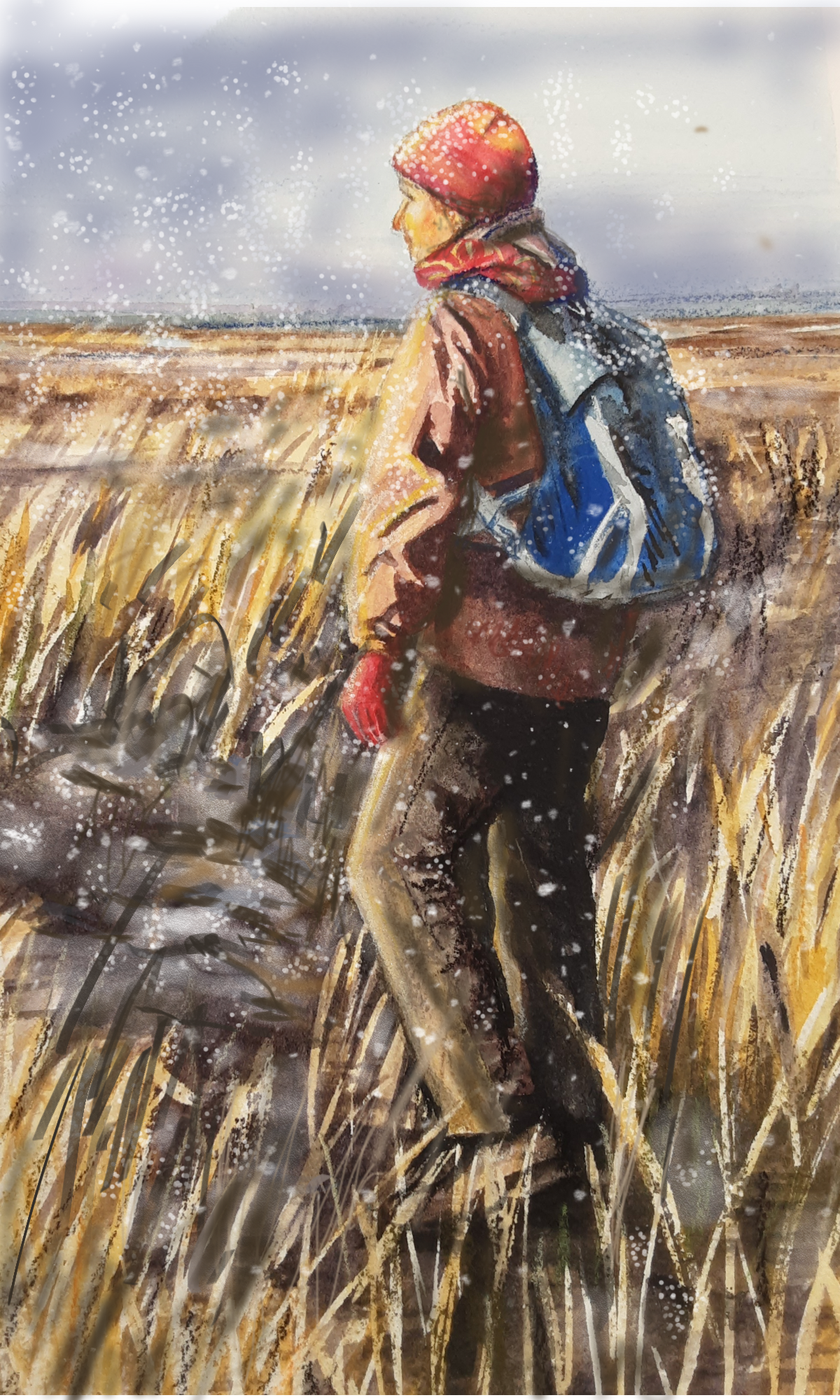 Me enjoying warm sun on my back and a flask of coffee during a long walk.