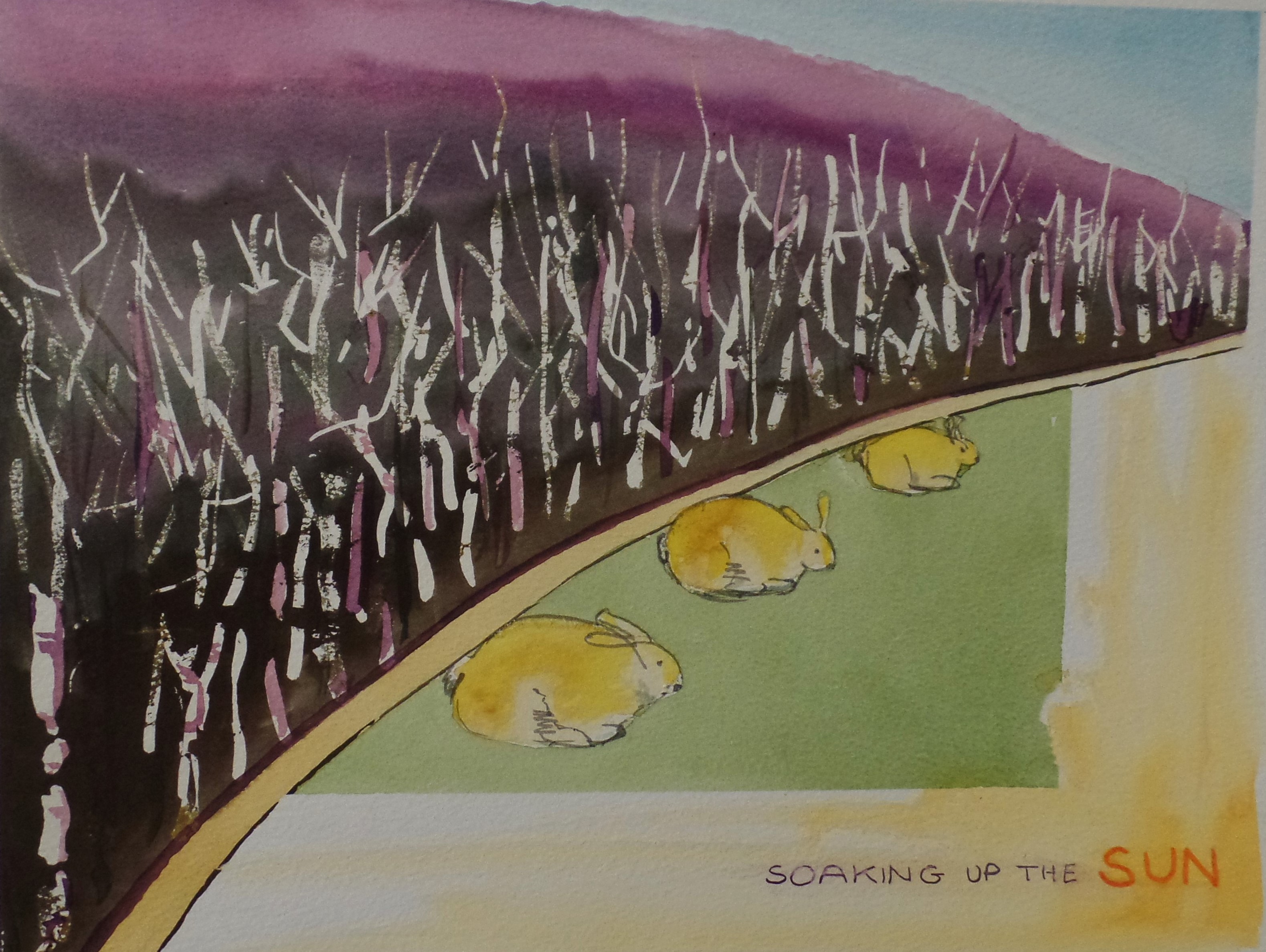 The sun warms us in all sorts of ways - body and mind. Mixed media on paper 8 x 10.