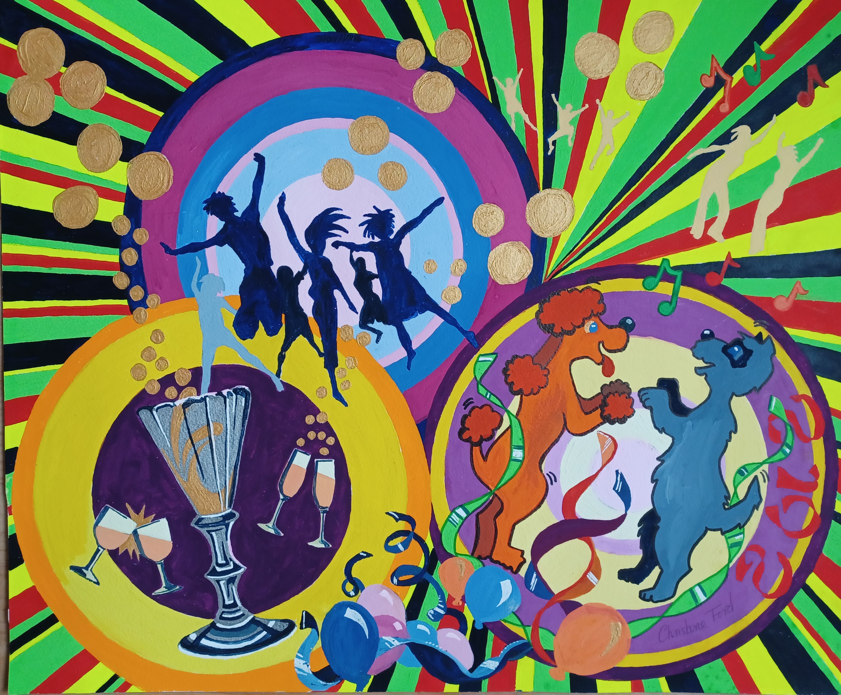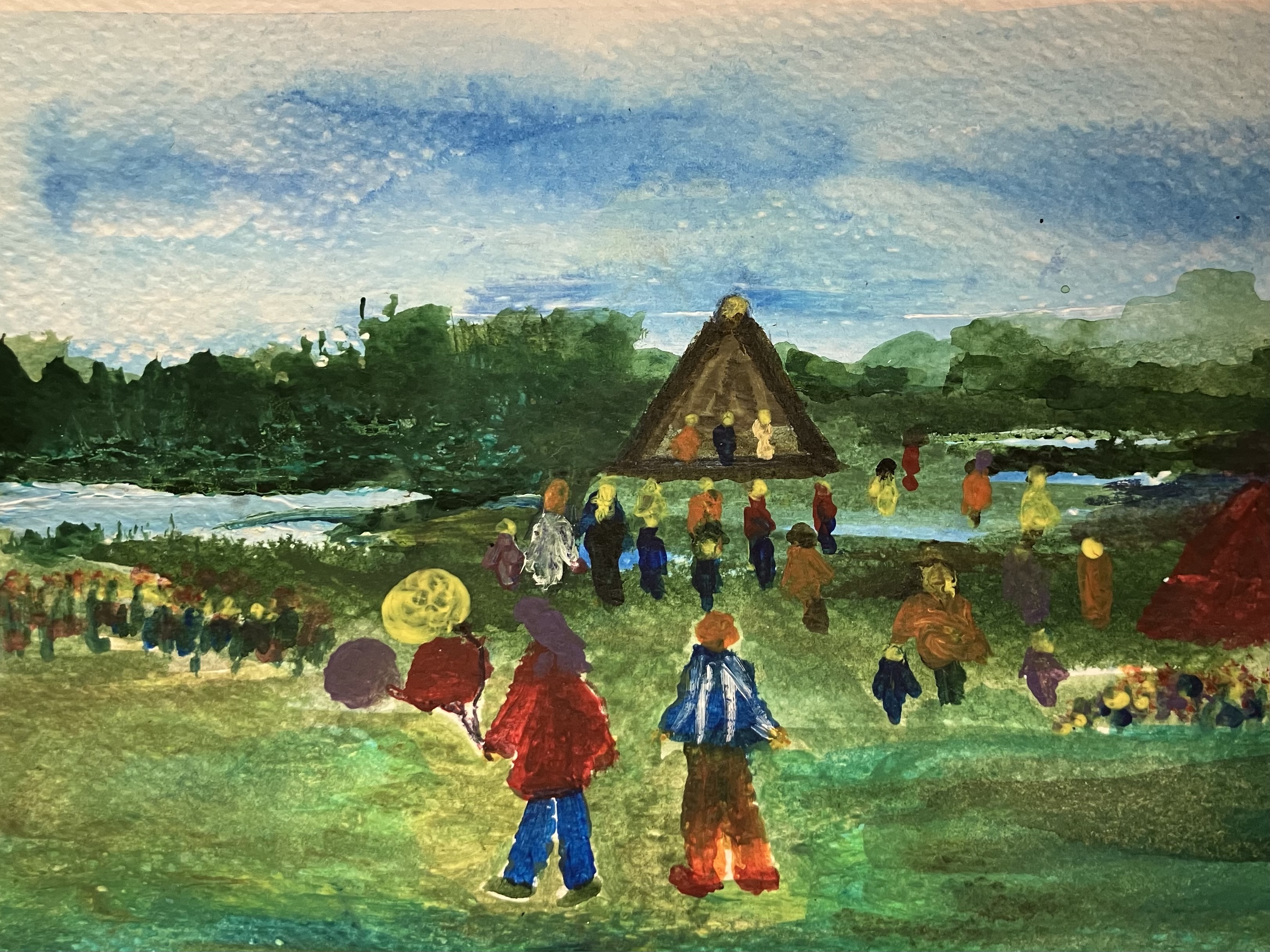 During the 1980s I went to a lot of music festivals including the Glastonbury Festival three times. This painting of a music festival reminds me of that time.
