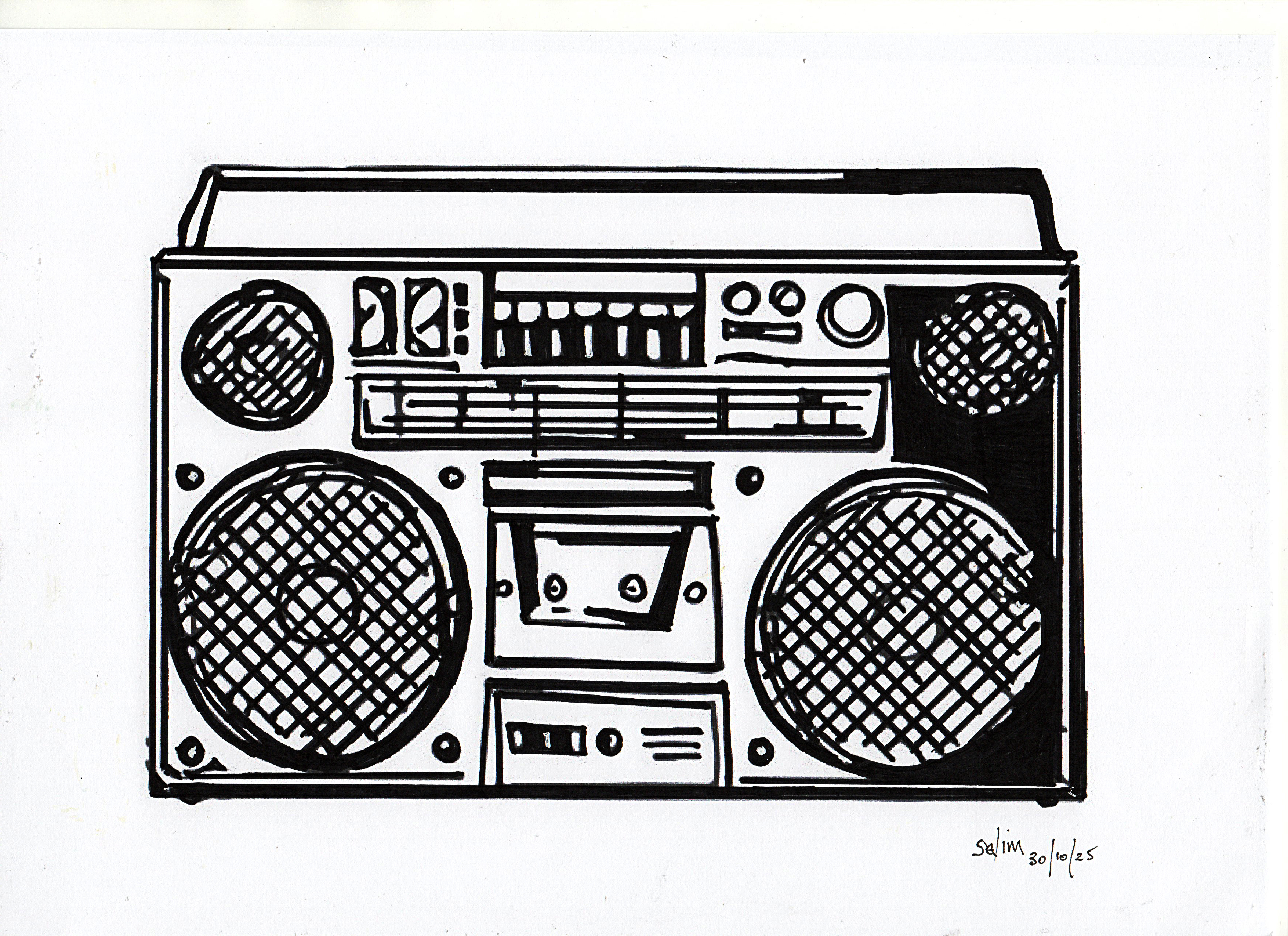 Was a craze in the early 80's with music blaring out everywhere in the parks and houses. a quick sketch in felt-pen.