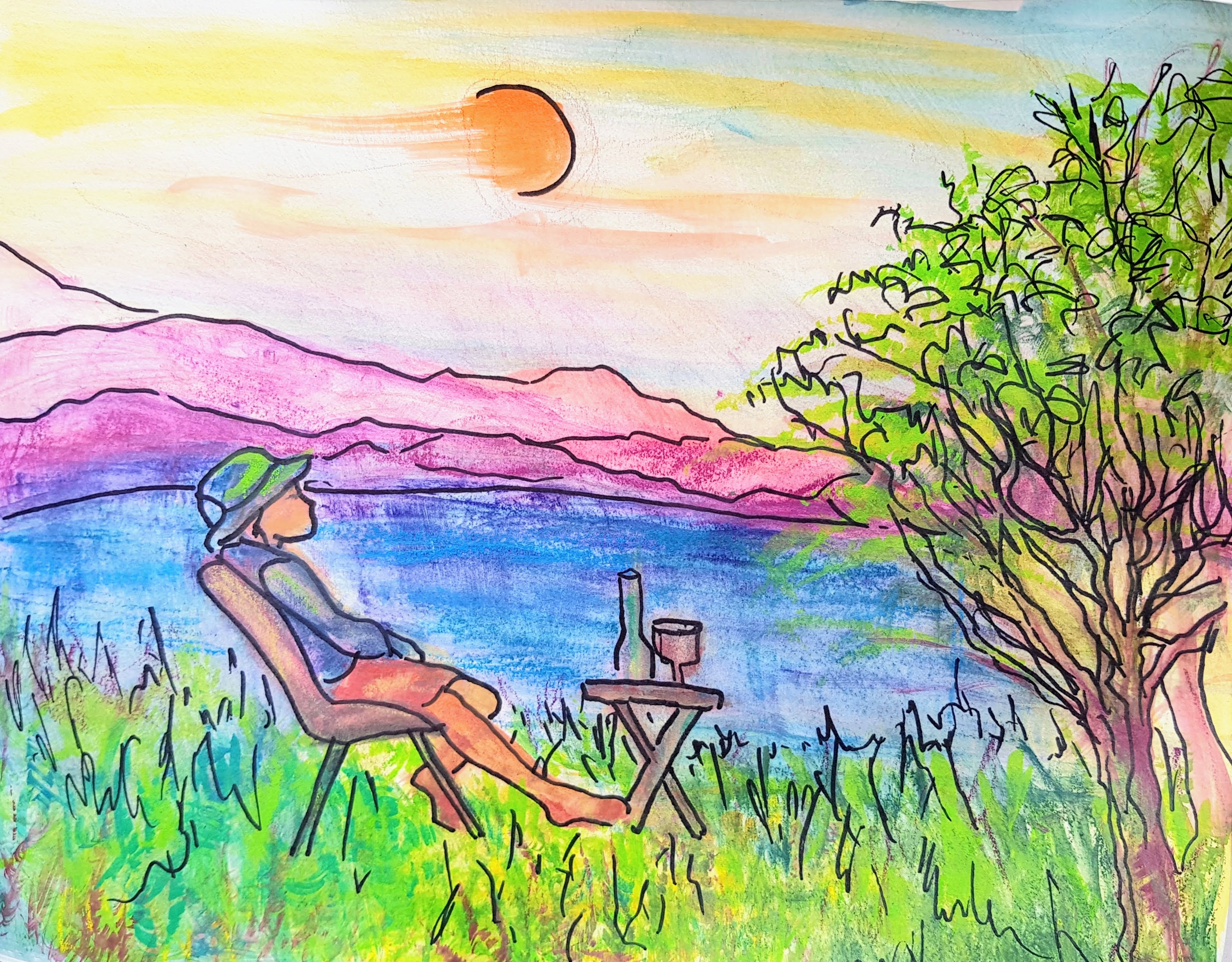 'Campsite chilling' by Linda Allinson, Sheffield u3a