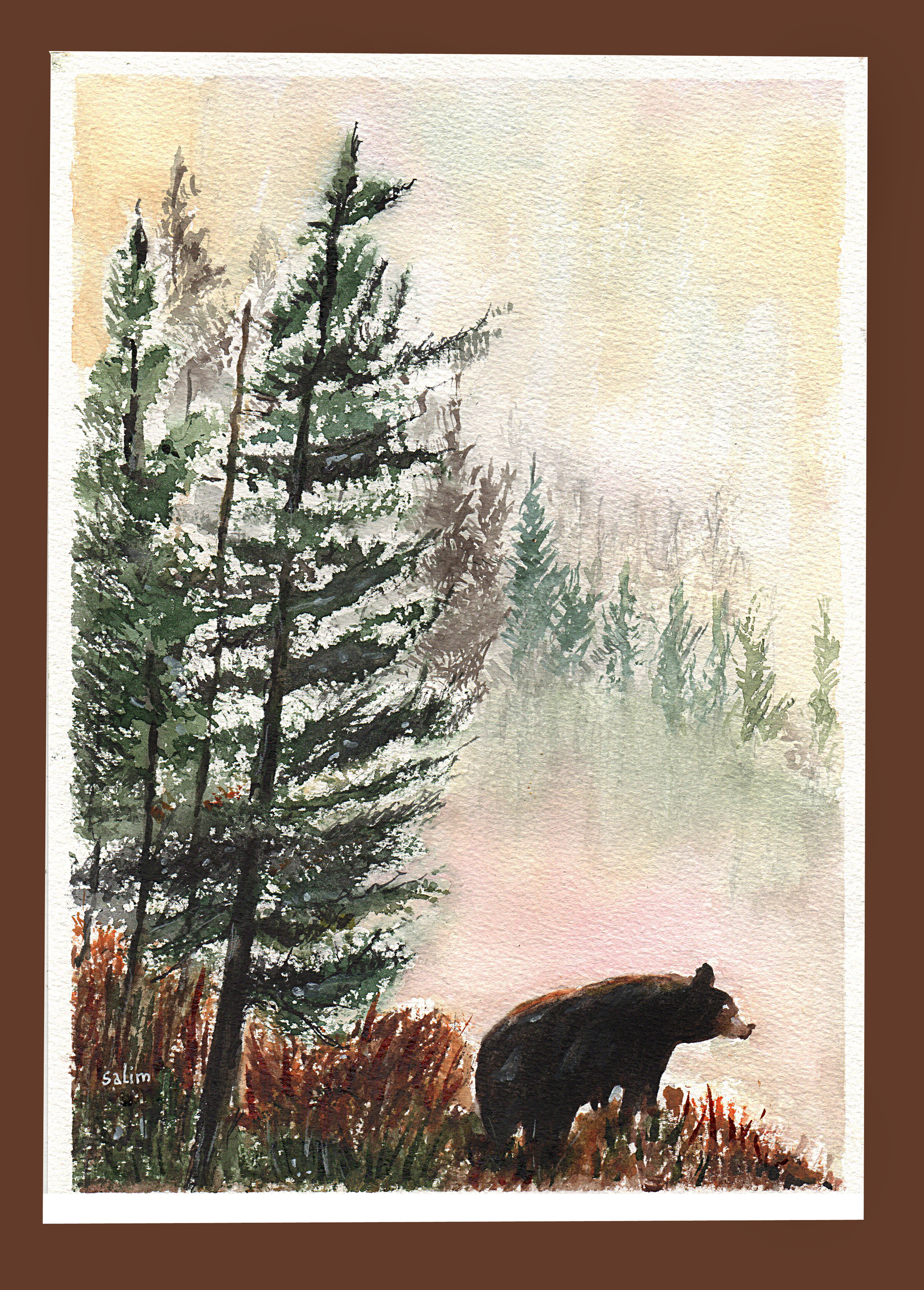 A lost bear looks from Afar the Canadian Rockies & thinks thr Rockies look the same as the American one.