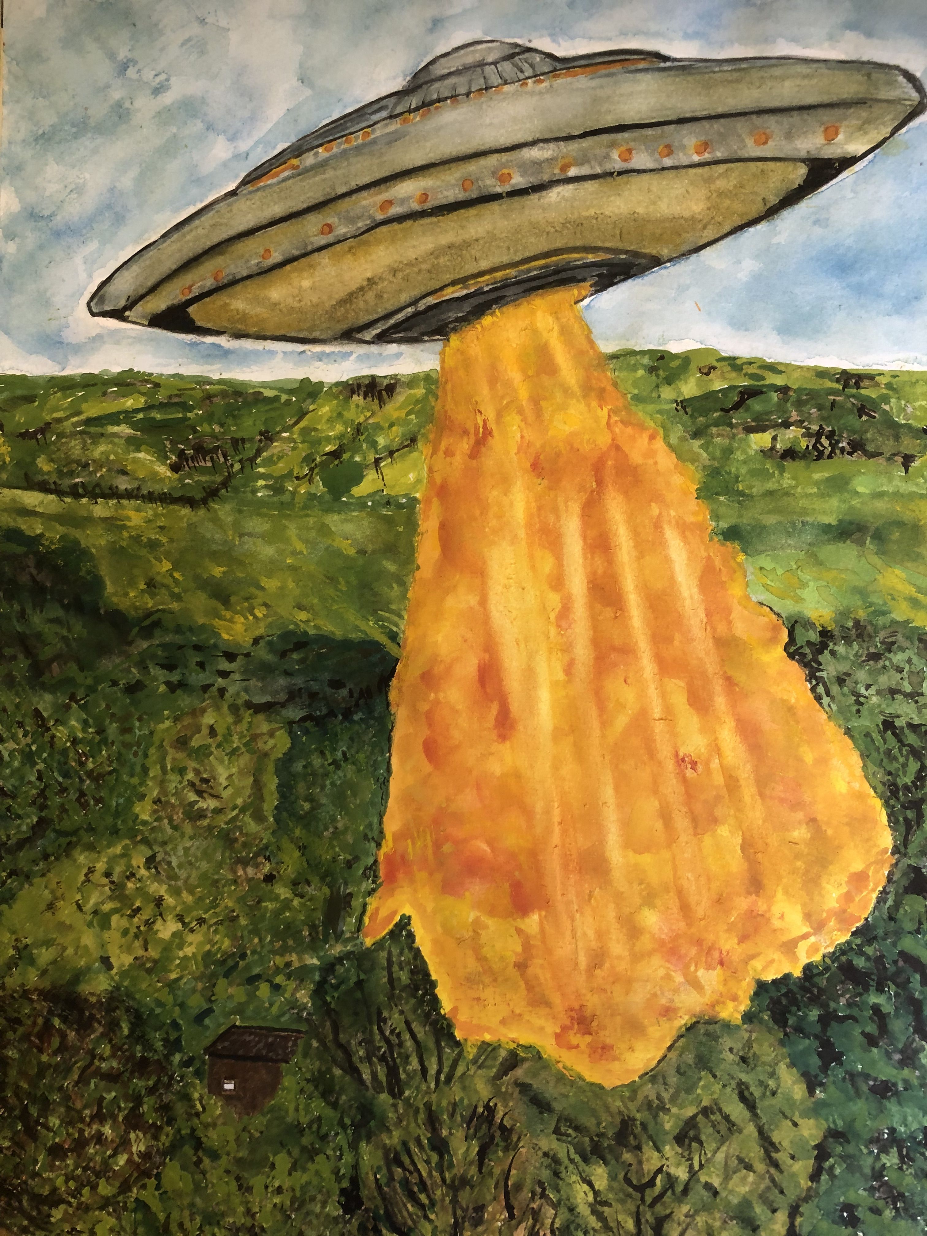 Real or imaginary UFO over English countryside.
