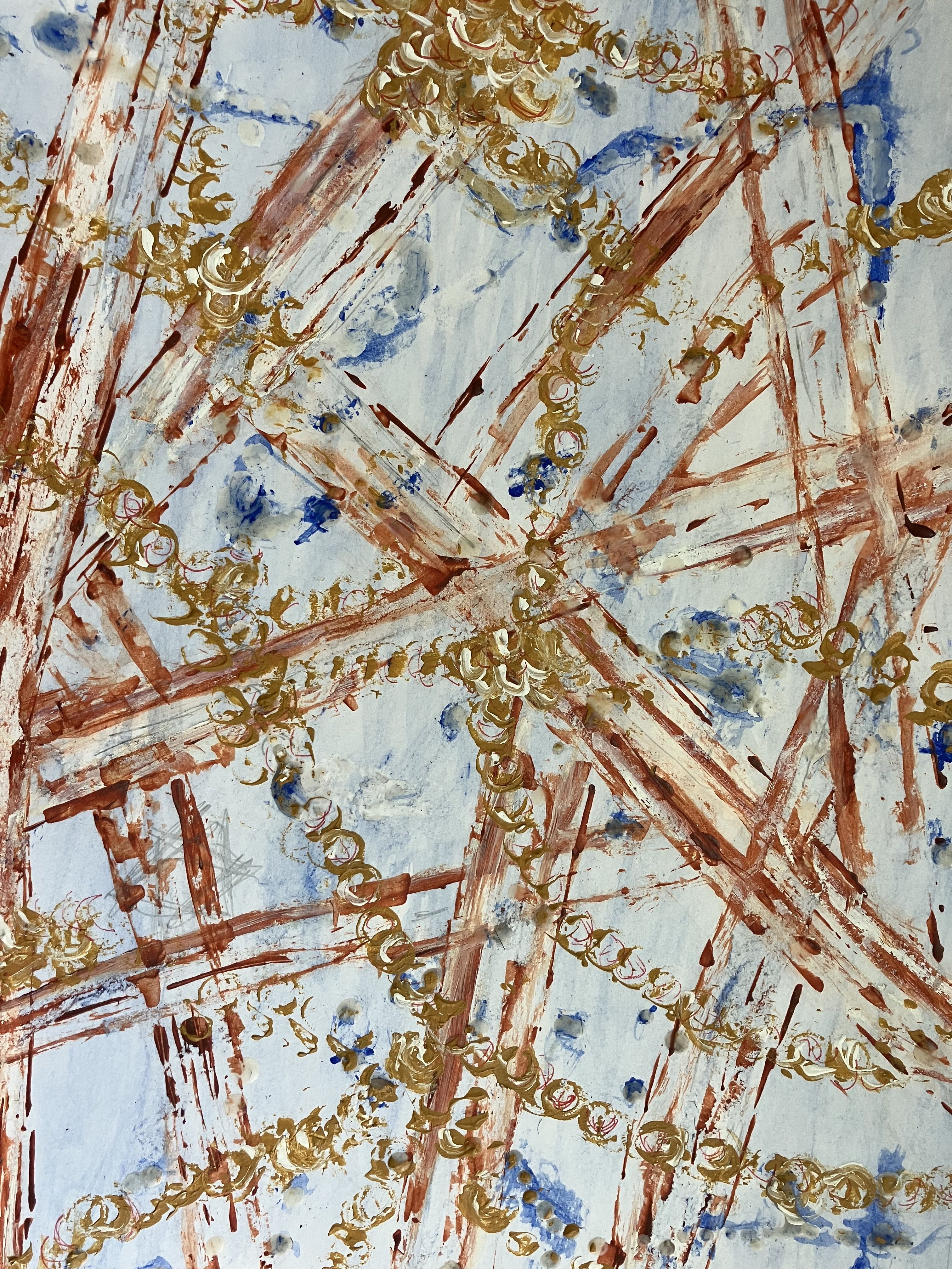 This abstract painting is just a nod to Richard Mirando, who was a New York street artist in the1980s.He began exhibiting his art with Andy Warhol and others. I used water-mixable oils.