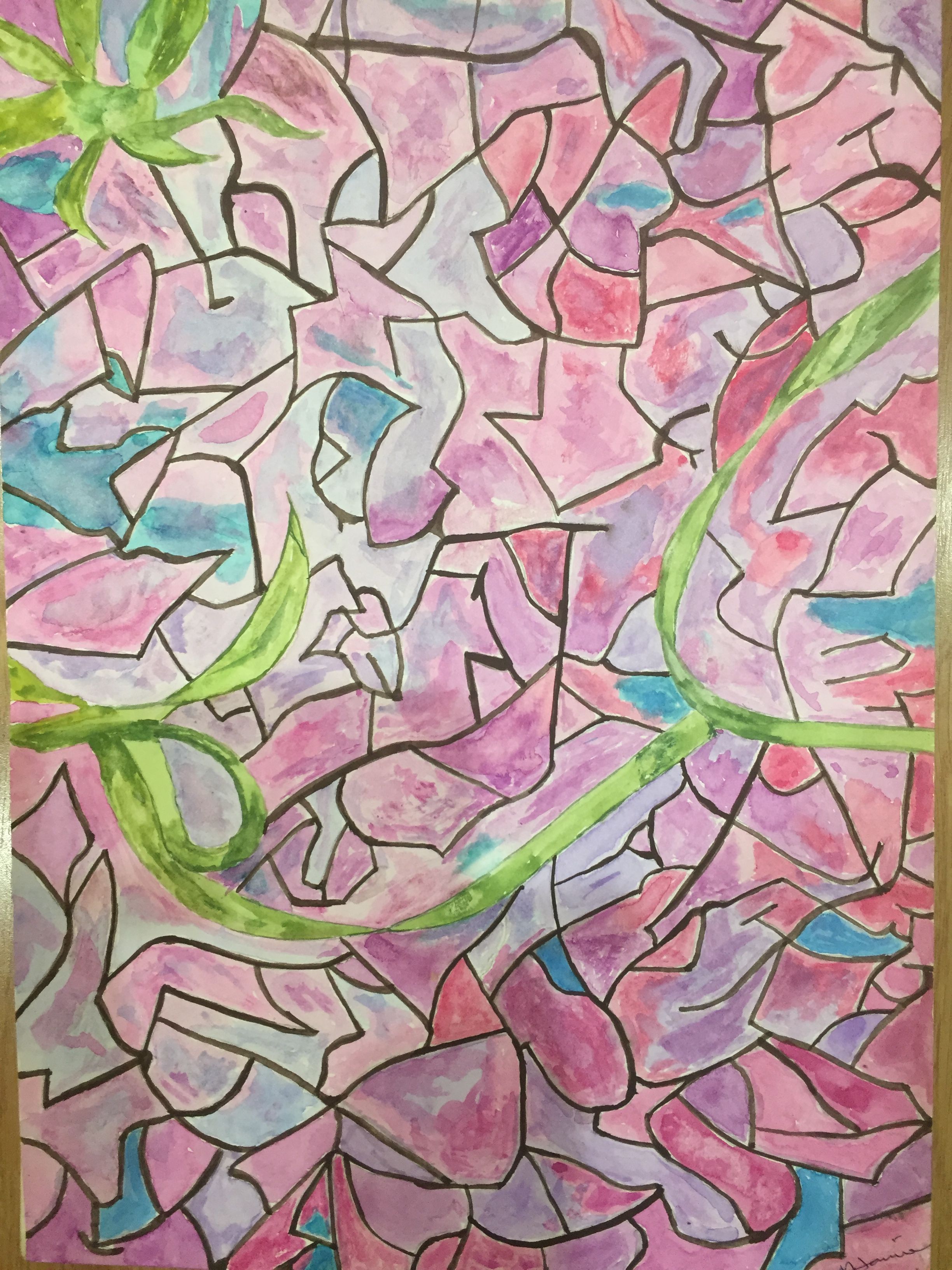 In the late eighties the world wide web was invented which resulted in my abstract watercolour painting.