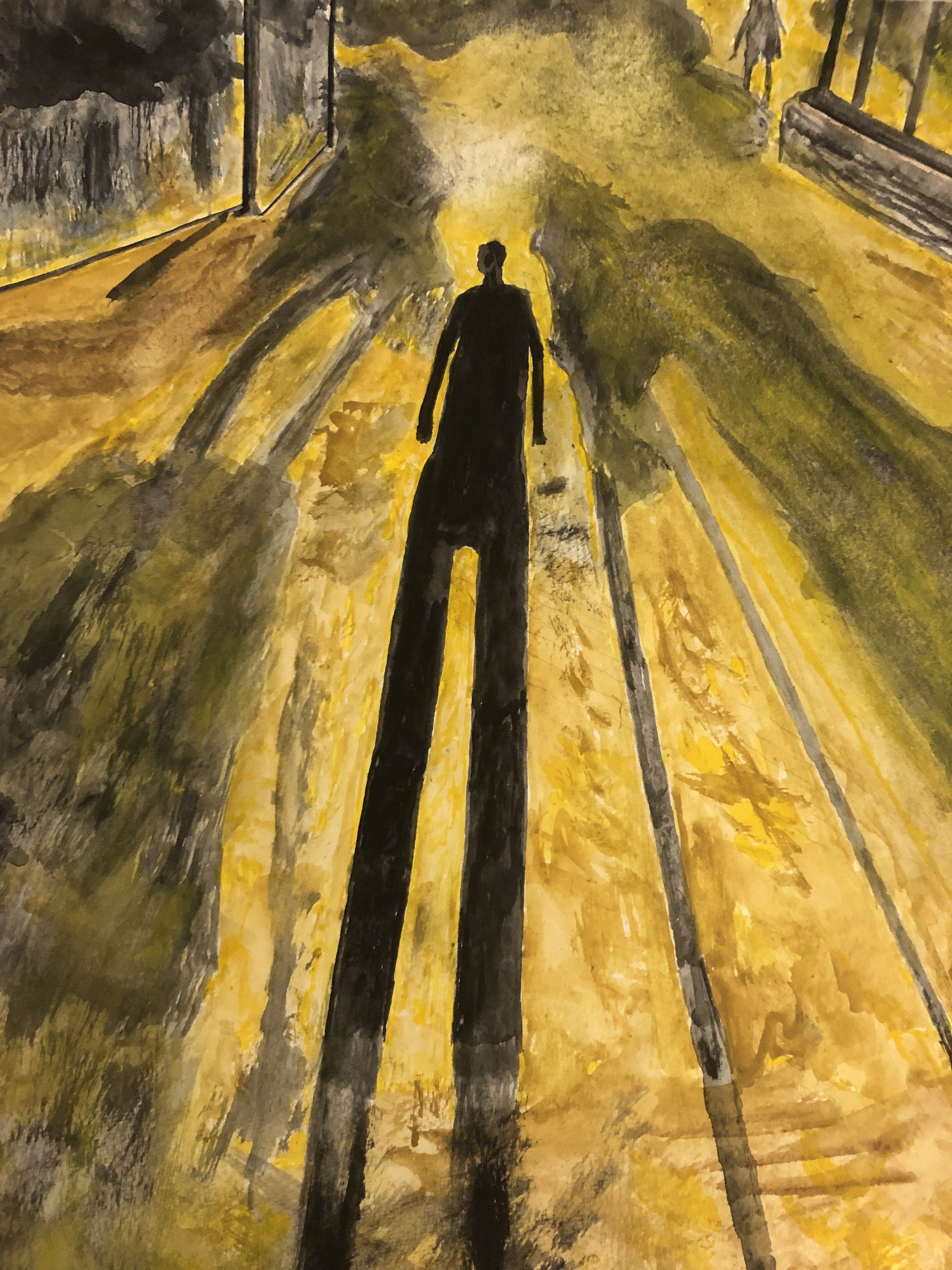 I did this watercolour painting Walking in my shadow whilst on Madeira recently which reminded me of a circus performer.