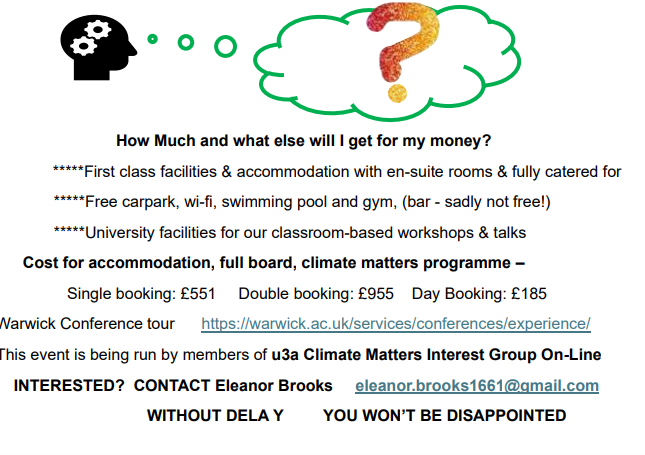 Jenny from the IGO group Climate Matters sends news about a 3 day Summer School at Warwick University 9-12 May 2025.