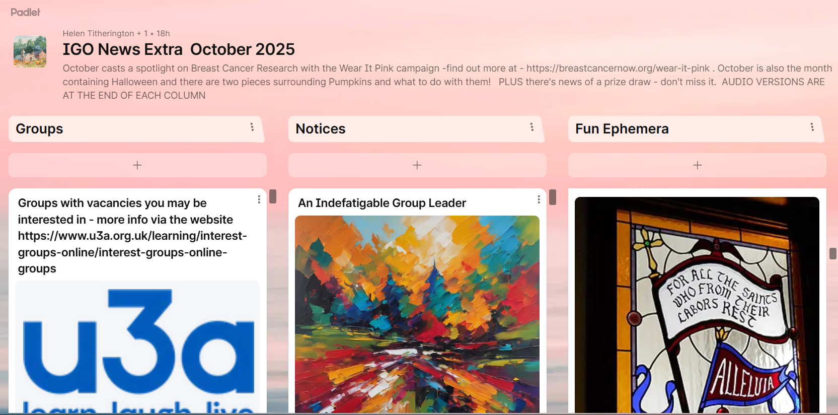 Note from the editor – this is why we produce the newsletter in different formats. Some people prefer the web version and some the Padlet version. We try to cater for all preferences. If you don't want to read and look at the pictures, have you tried the audio version yet?