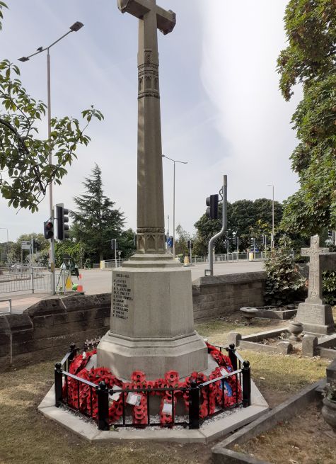 'The War Memorial stands near Forest Town crossroads in the churchyard of St Albans Church, Forest Town, Near Mansfield. It is situated to the left of the gates leading to the main door of the church.'