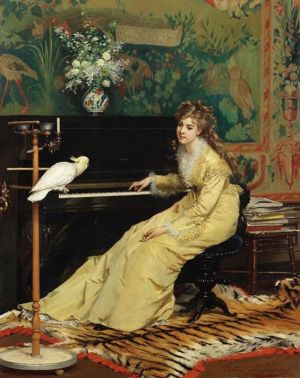 Here’s a link to Scott Joplin’s ragtime piece The Entertainer and a great picture from wiki commons of a woman at the piano with a Cockatoo, painted in 1870 by Gustave Leonard de Jonghe.