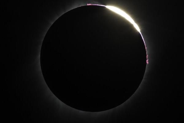 A Diamond Ring total Solar eclipse, caused by the Moon passing between the Earth and the Sun.