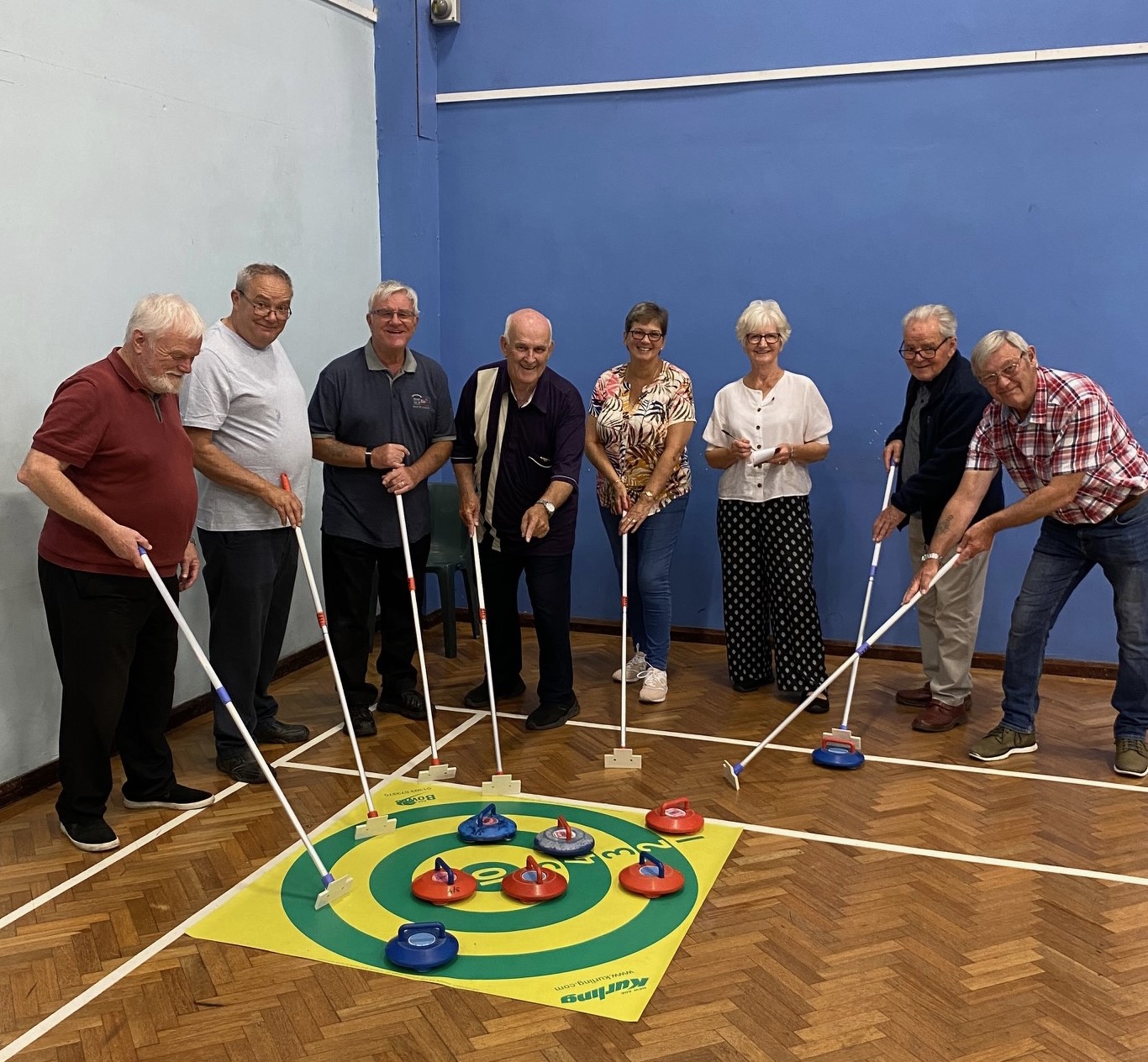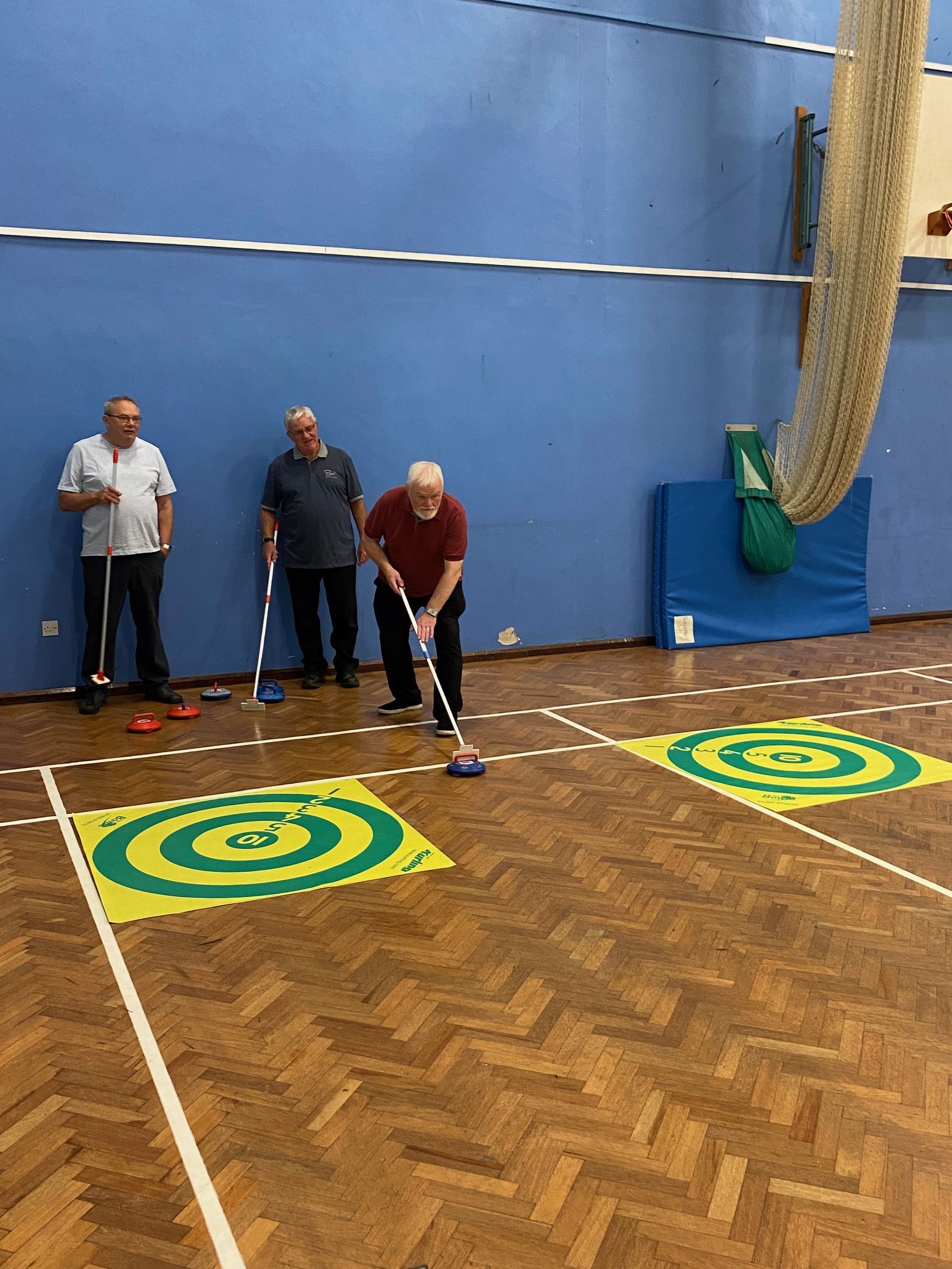 There are so many positives to Kurling. It is a sport accessible for all. Gentle exercise every week, and a chance to play in a small team against others , brings so many social benefits as well as we gather for our tea/coffee and cake! Which are an integral part of our meetings every week. Located elsewhere on this page are rules, details about the GBKA (Great British Kurling Association) and an idea of how to play the game. The internet plays a part, a google search of New age Kurling, or just Kurling, will bring up much to see.