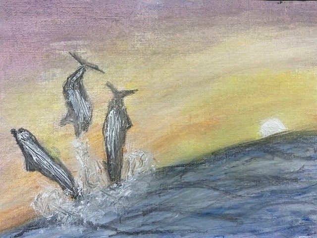 I think my dolphins - painted with water-mixable oils - look as if they are enjoying space and freedom.
