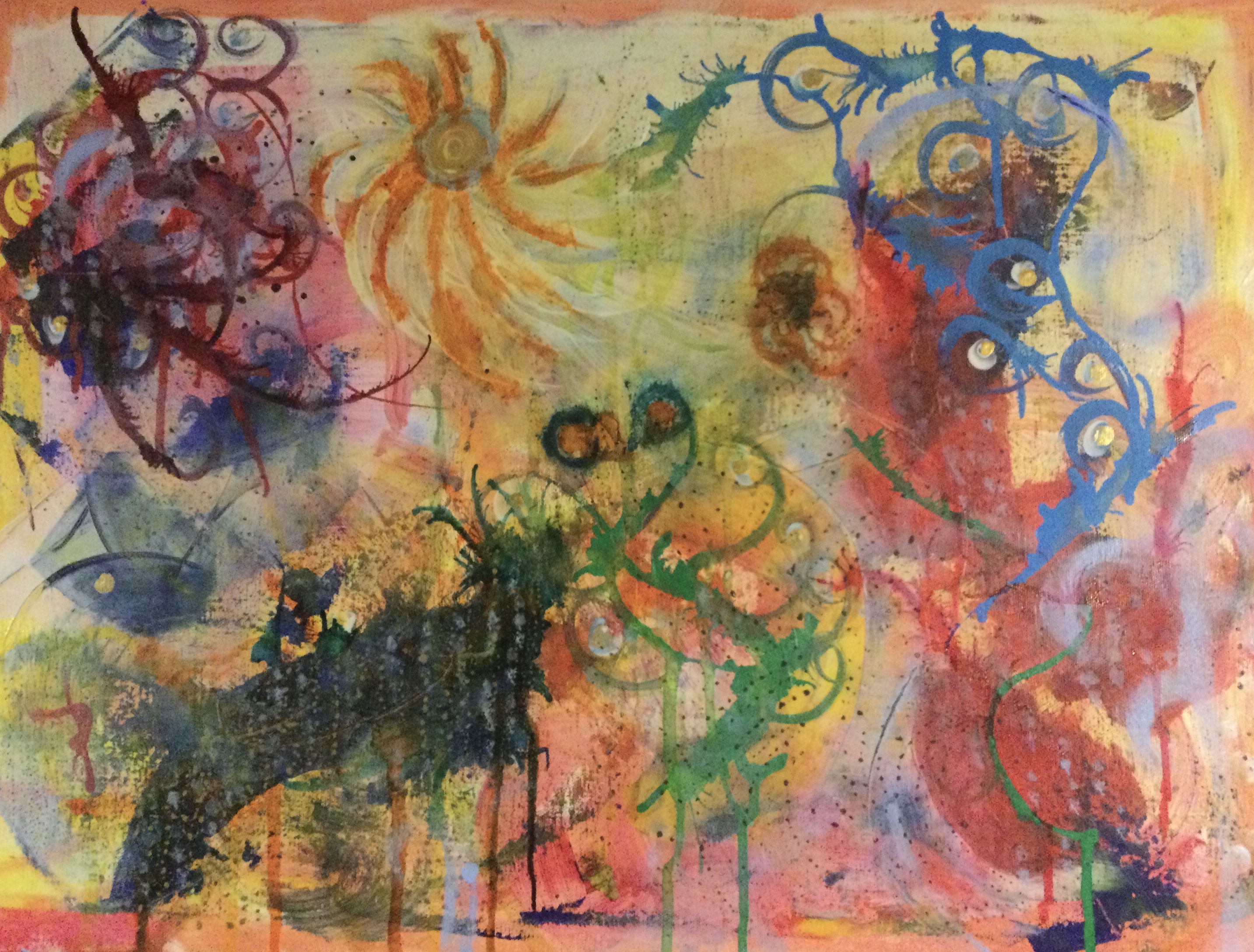 I was inspired to paint this painting by seeing reflections in the water. The picture is the same if reversed.