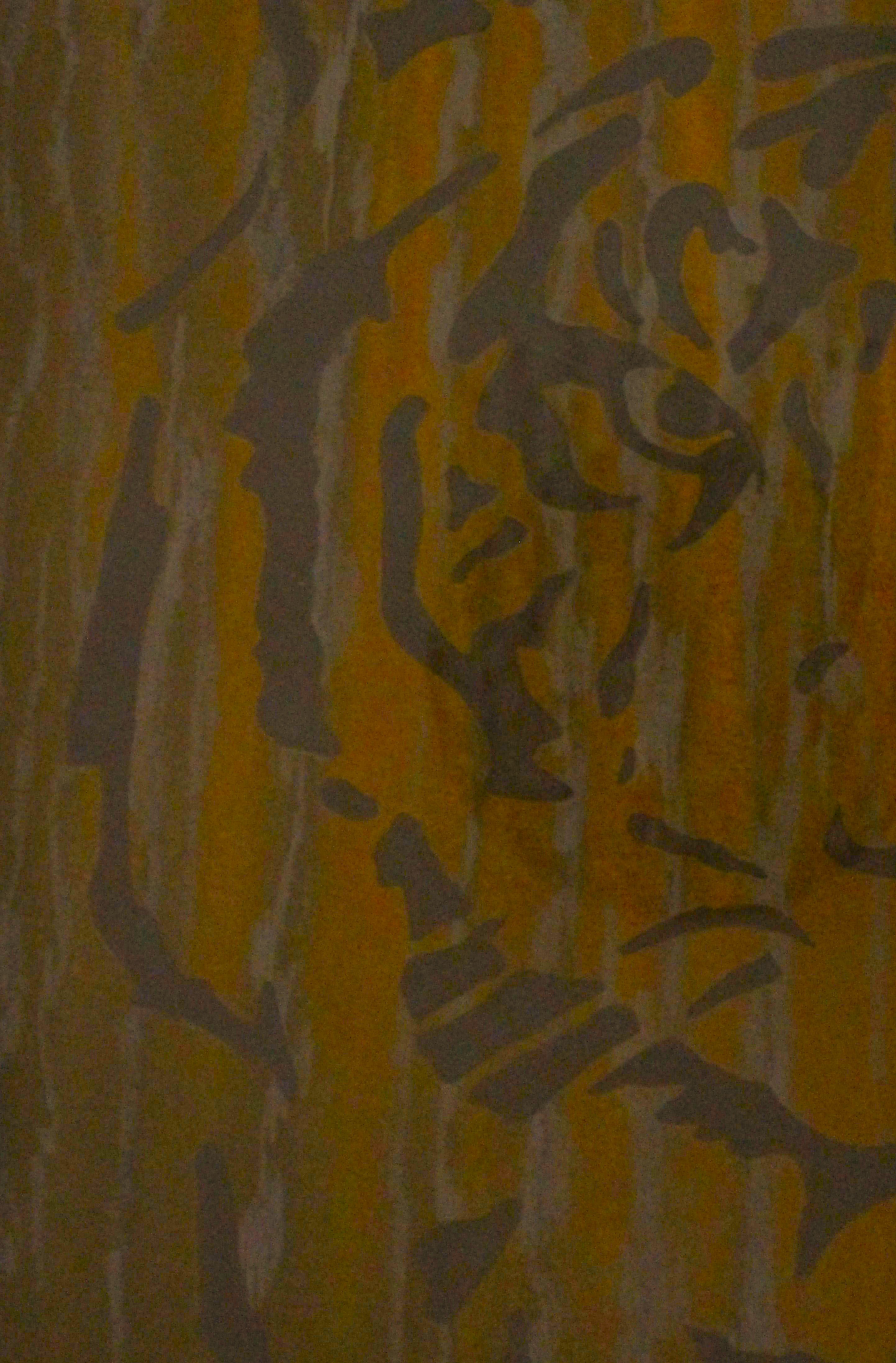 This piece shows a tiger's face in the black areas of the tree bark.