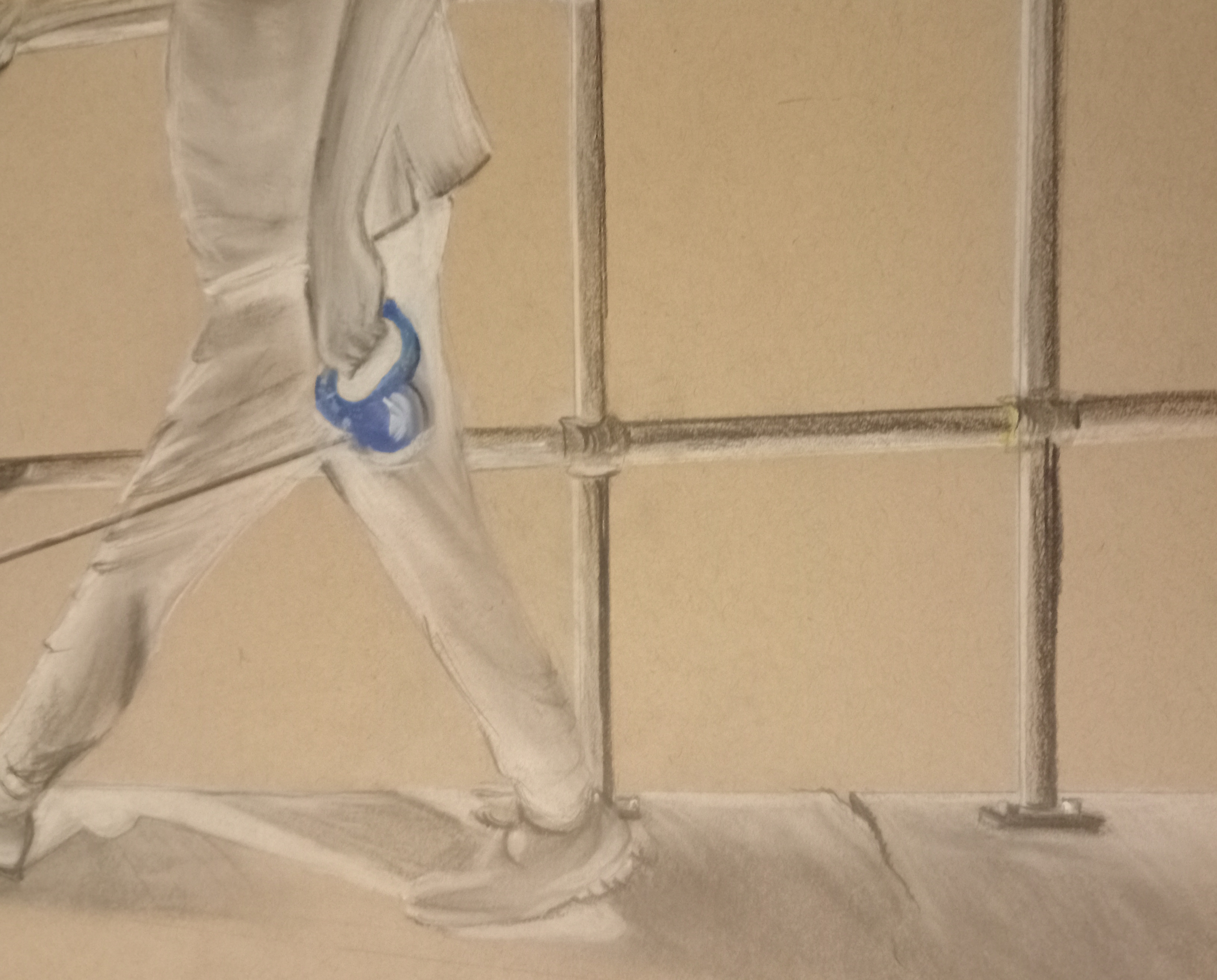 Pastel on brown paper. Trying to reverse light and dark. Good exercise but head and hands found it difficult!