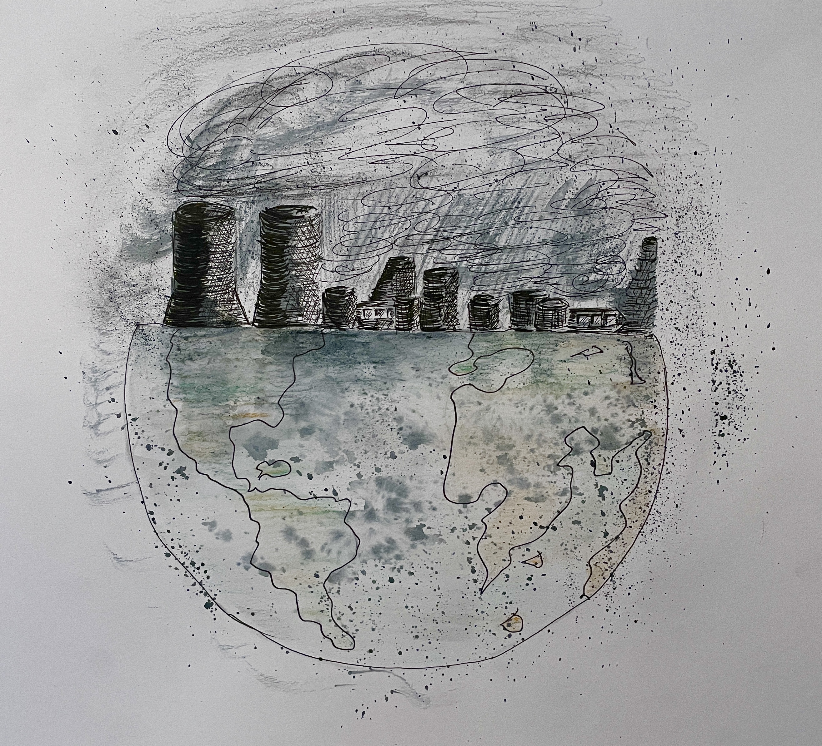 Reverse Climate Change before it’s too late. Materials used ink and water colour.