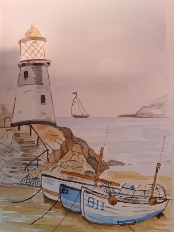 A watercolour depicting fishermen's boats - a working man's transport.