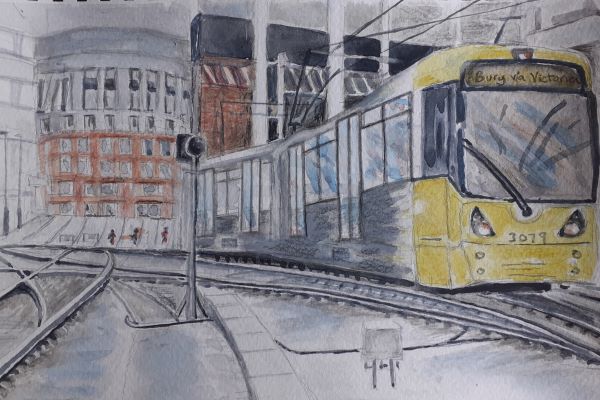 "Metrolink tram at Manchester Victoria" by Anne Pearson, Hale & District u3a