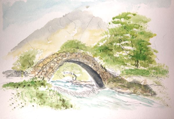 Packhorse Bridge - original motorway -(watercolour)