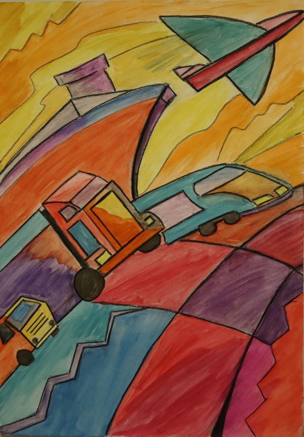 My Painting was inspired by Leon Zernitsky, the abstract forms and amazing colours make his work appealing and eye catching.