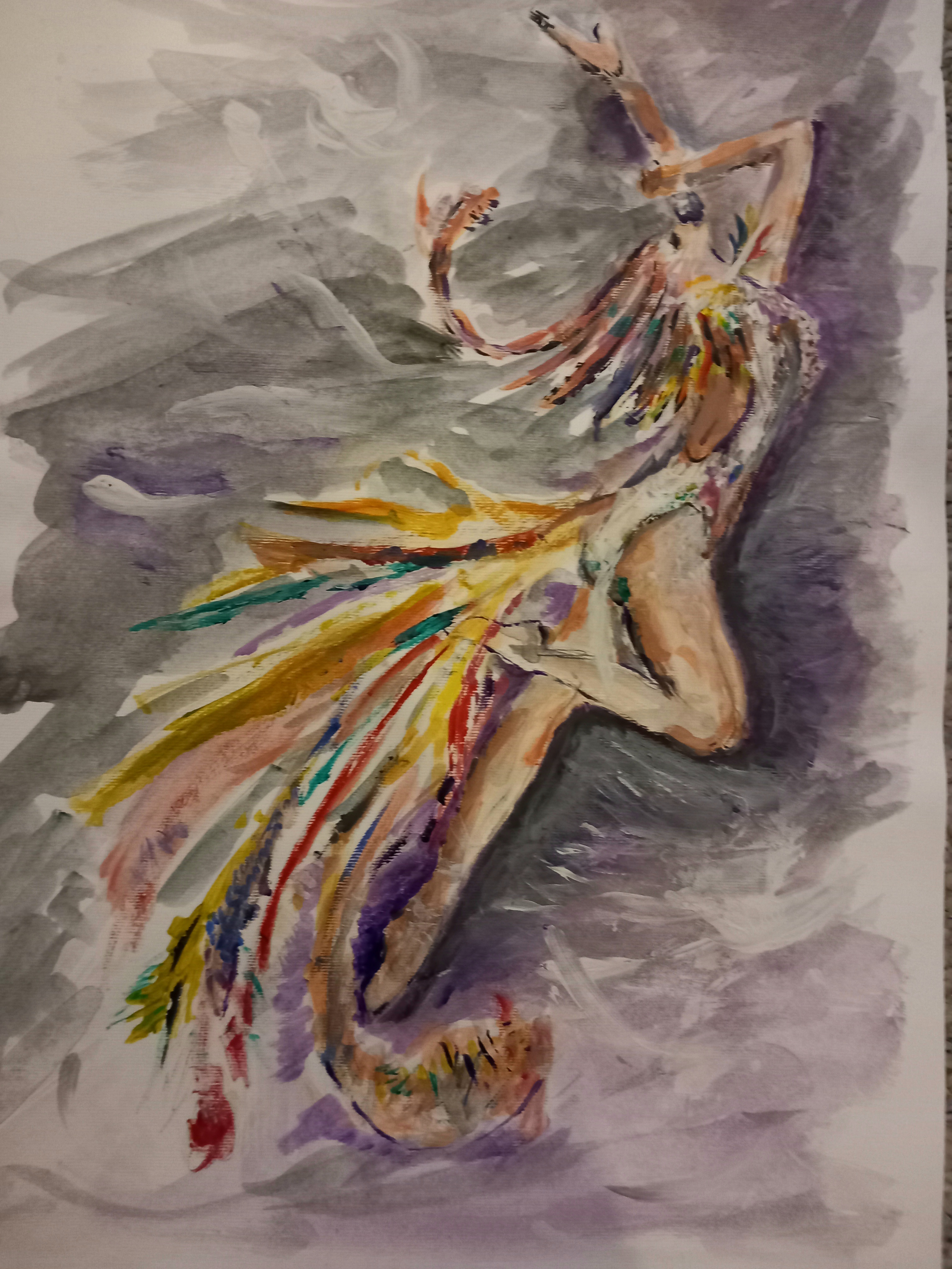 I did this watercolour painting Walking in my shadow whilst on Madeira recently which reminded me of a circus performer.