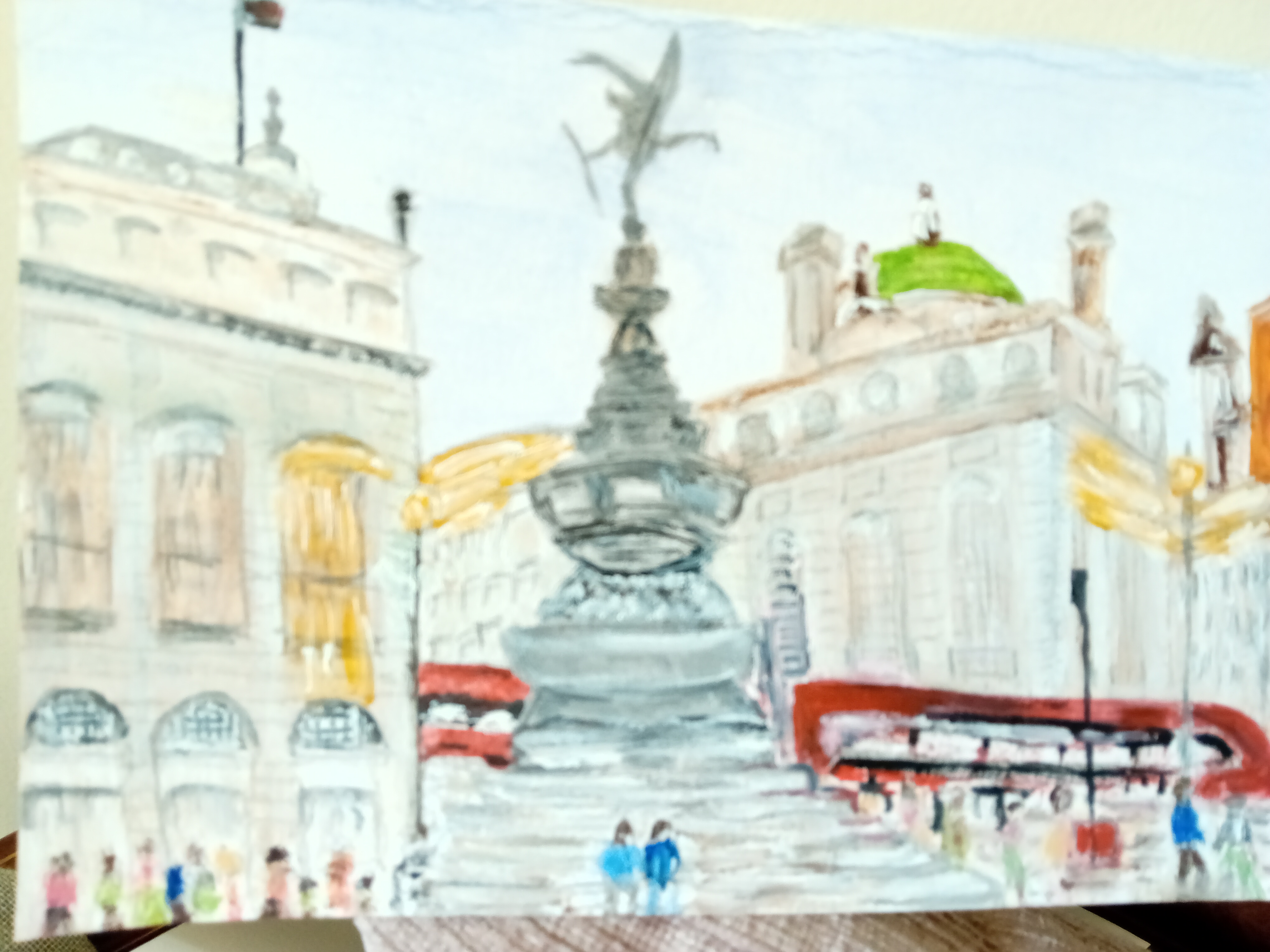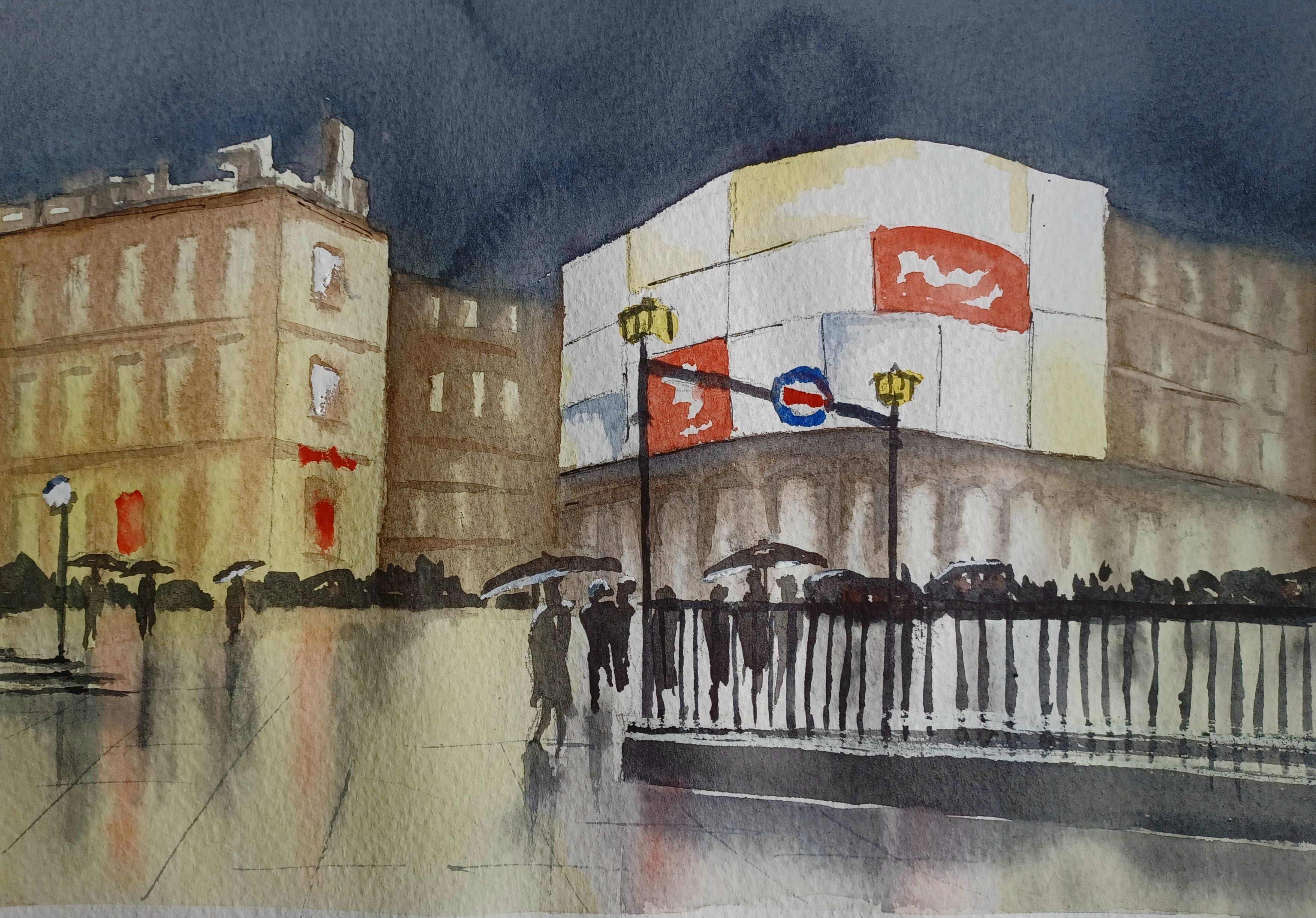 I thought Piccadilly circus would be a good idea for the prompt and hope I have conveyed the hustle and bustle of it (in water-mixable oils).