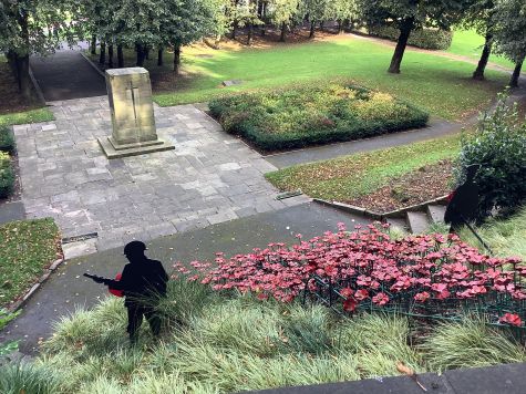 'The trees were mere saplings in the original photo and there is now an addition waterfall of poppies to commemorate the men that that lost their lives in battle along with artwork of black metal silhouettes of the soldiers.'